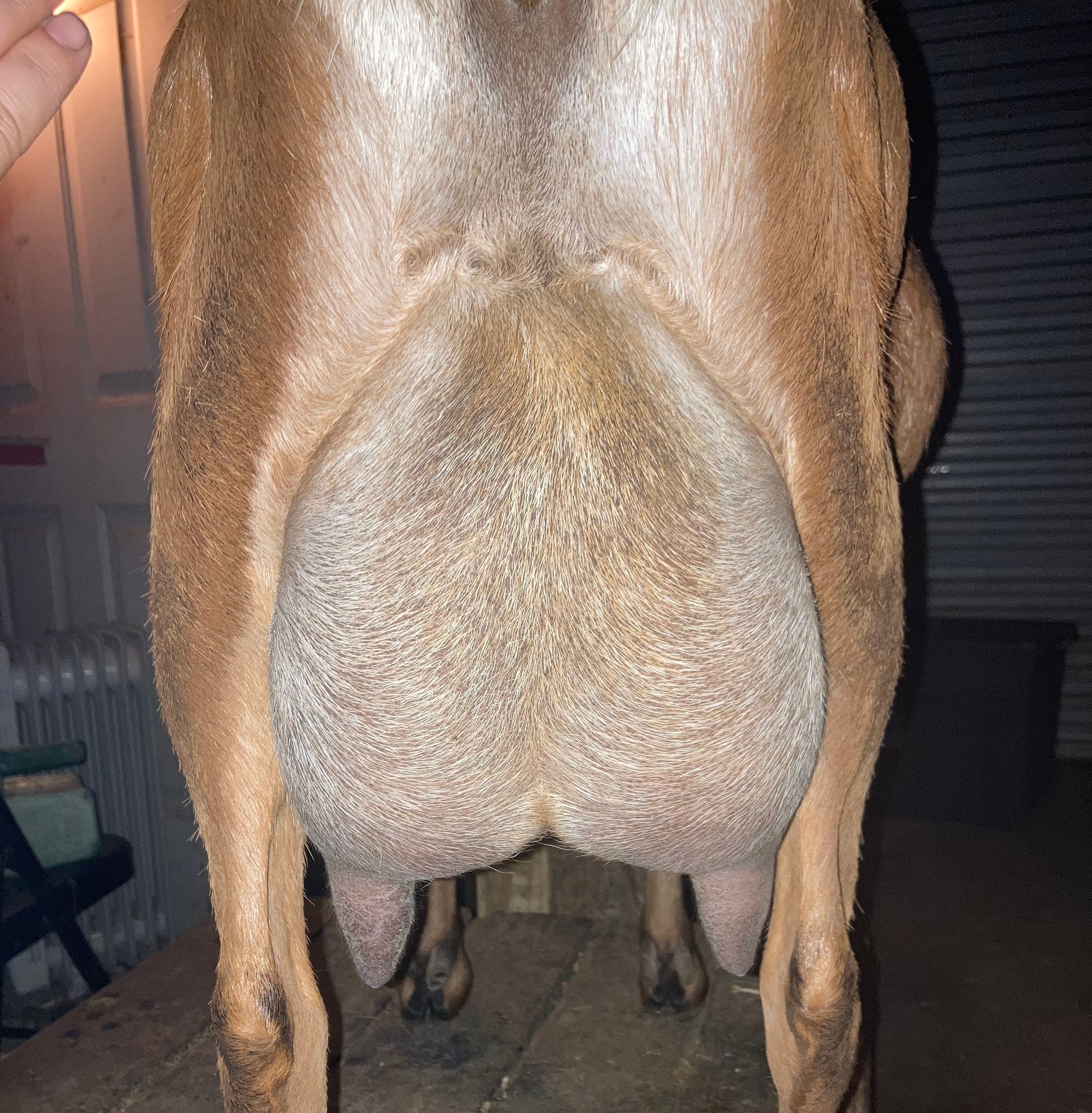 I am really impressed with the amount of milk Caramel has been giving us along with all the excellent traits she passes to her offspring. She holds her weight well throughout her lactation and has a wonderful disposition. I love how much body capacity she brings into the genetic pool and we have found that special line that crosses well with her! We are really looking forward to building our herd with her milky genetics.